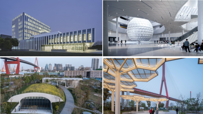 在上述八张作品中,倒数左二为同济艺嘉楼。它以简洁而有力的现代建筑语言回应中国当代城市语境,通过清晰的几何立面、通透的玻璃界面与充足的自然采光,将功能、空间与文化表达整合为一体,营造开放而灵活的内部空间,满足展览、交流、会议与办公等多元使用需求。设计强调空间的可变性与公共性,通过开放布局与公共区域促进互动与合作,使不同学科、行业与文化实践在此交汇,形成一种转文化的空间实践——在这一空间中,中国当代城市经验、全球现代建筑语言与学术公共生活文化得以相互转译与整合。结合绿色景观、材料选择与可持续策略,建筑进一步回应环境与现实条件,成为连接本土经验与全球当代性的公共平台,兼具实用性、文化气质与当代精神。