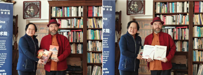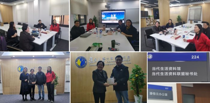 随后参观了复旦大学大数据研究中心人文社科数据研究所。全球中国学术院创院中方院长张乐天教授在复旦大学创办的当代生活资料馆,以及他发起的全球当代生活资料联盟秘书处,均设于此处。其间还参观了潘悟云教授的办公室。潘教授是中国当代语言学与语言人类学领域的重要学者,长期推动“21 世纪中国语言与方言数据库”建设,其在文化传播与人群迁移研究方面产生了深远影响。图书馆也由此成为他们在退休之后继续发挥学术影响力的重要阵地。