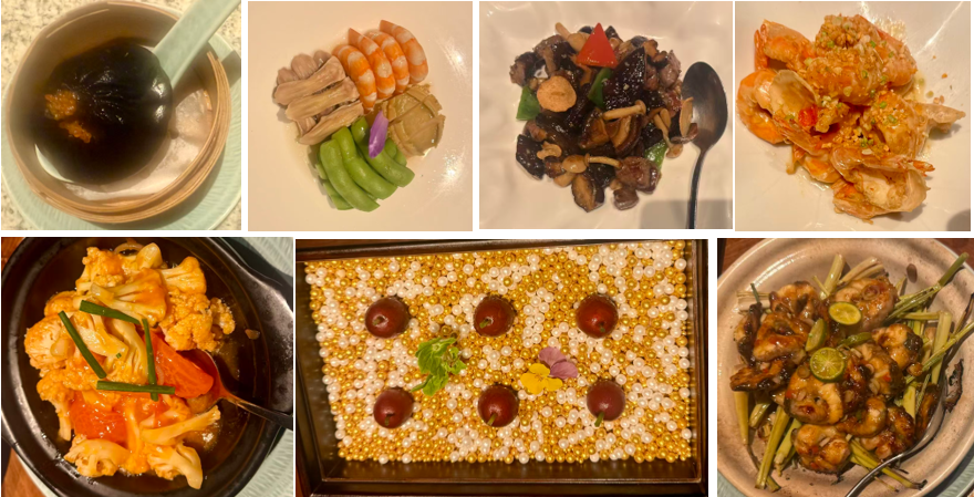 这桌菜整体呈现出高端中式餐饮的成熟风格,是精致沪菜与粤菜的当代融合表达。摆盘克制而有秩序,色彩与留白控制精准,体现出主厨清晰的审美判断与专业意识。菜品结构上冷盘、热菜、汤品与主菜层次分明,节奏舒缓而有逻辑,既强调食材本味,也通过细微调味建立风味层次,呈现出一种不依赖视觉噱头的“内在完成度”。从技法与口感判断,菜品重在火候与工序而非酱料覆盖:海鲜鲜嫩、菌菇有镬气、汤品清澈醇厚,显示出扎实的厨房功底,也呼应了“明厨现制、杜绝预制菜”的承诺。