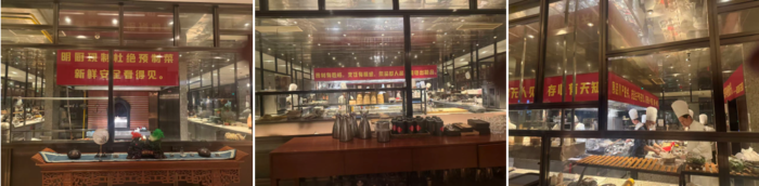 我们的交流在晚上的聚叙中继续。“食”在中国常常承载着多重体验与社会意义,这次在龙庄琇厨感受到的海派粤式融合菜的创新尤为值得一提。正如走进中国高校时常会映入眼帘的红色横幅与标语,这家餐厅同样以醒目的红色标语作为空间语言的一部分。但与传统中餐馆常见的“厨房重地,闲人免入”不同,这里以大型开放式厨房作为餐厅核心,让烹饪过程完全可见。悬挂其上的标语——“明厨现制,杜绝预制菜,新鲜安全看得见”“食材有性格,烹饪有情感,菜品即人品,匠心出精品”等——不仅是一种质量承诺,也构成了对食物、劳动与公共信任关系的明确表达,使餐桌本身成为一次可被感知的交流体验。