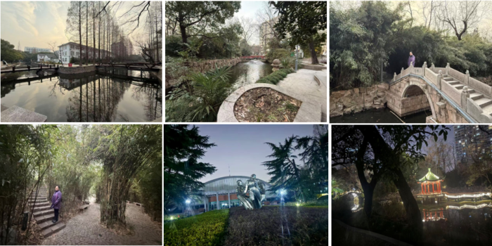 与水系不同,竹林更多分布在早期建筑周边的园林空间中,尤其是三好坞附近那片幽静的竹林,呈现出一种“古色古香”的意境,与周围的现代建筑形成耐人寻味的对照与互补。这些园林景观常被视为同济人文气息的代表,是师生漫步、停留、感受自然与校园历史气息的静谧之所。在这里,校园不再只是功能性的教学空间,而成为一种可被体会、可被沉浸的日常环境。
