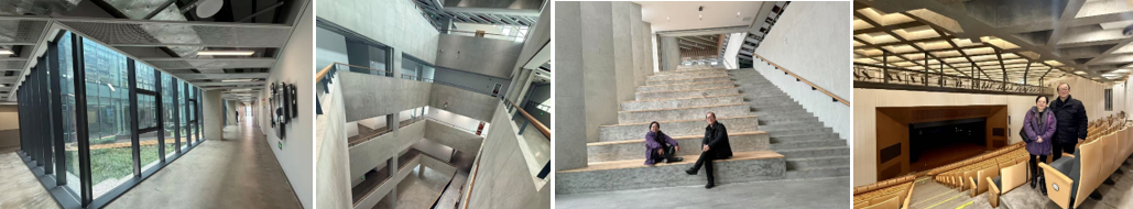 讲座结束后,李麟学院长亲自带我参观了同济大学嘉定校区,并重点介绍了由他主持设计的艺嘉楼。沿着建筑内外的行走路线,他一边讲解空间构思,一边回应我对细部与整体关系的提问。艺嘉楼以清晰而克制的现代建筑语言展开:通透的立面、层层展开的中庭、连续的台阶与坡道,将教学、交流与公共活动自然地编织在同一空间体系中。大尺度的公共大厅、开放的学习空间与可变的展演场所,使建筑本身成为一座“可行走的学院”,不断生成交流的可能。由设计者亲自带领参观,使建筑从图纸与理念转化为可被感知的经验,这不仅是一次空间的漫游,也是一场关于建筑如何承载学术公共生活、如何通过空间实践回应当代教育与文化使命的深度对话。
