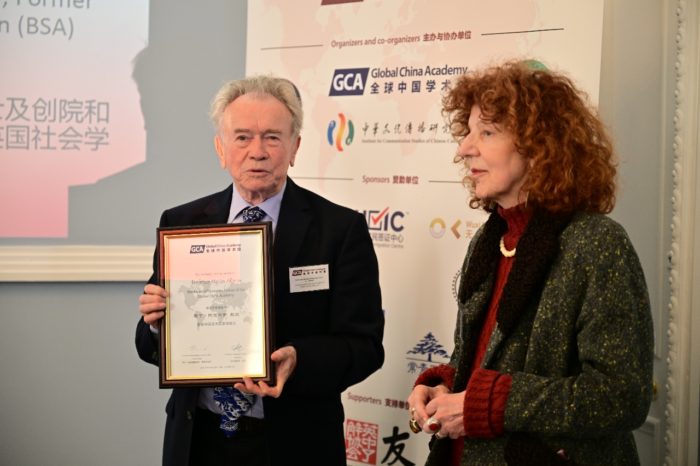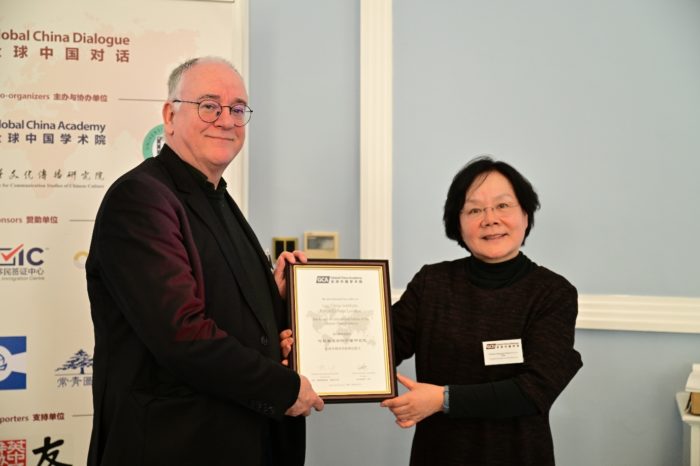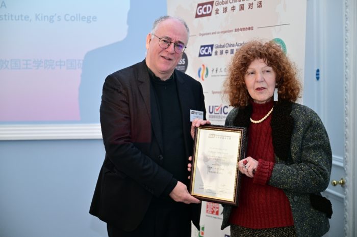 Professor Xiangqun Chang FRSA FGCA, President of the Global China Academy, presented certificates to GCA institutional fellows: Lau China Institute, King’s College London