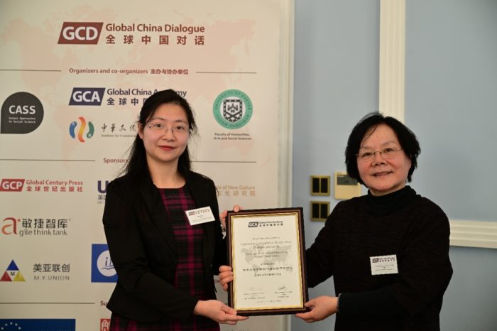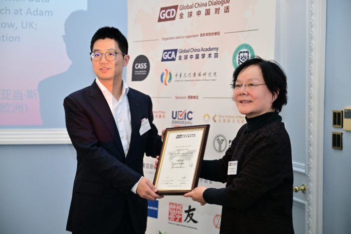 Professor Xiangqun Chang FRSA FGCA, President of the Global China Academy, Honorary Professor of University College London (2015-20), presented certificates to GCA associate fellow to Dr. Yukun Shi, Senior Lecturer in Accounting and Finance with Data Analytics, Director of postgraduate research at Adam Smith Business School, University of Glasgow; President of the Chinese Economy Association (Europe)